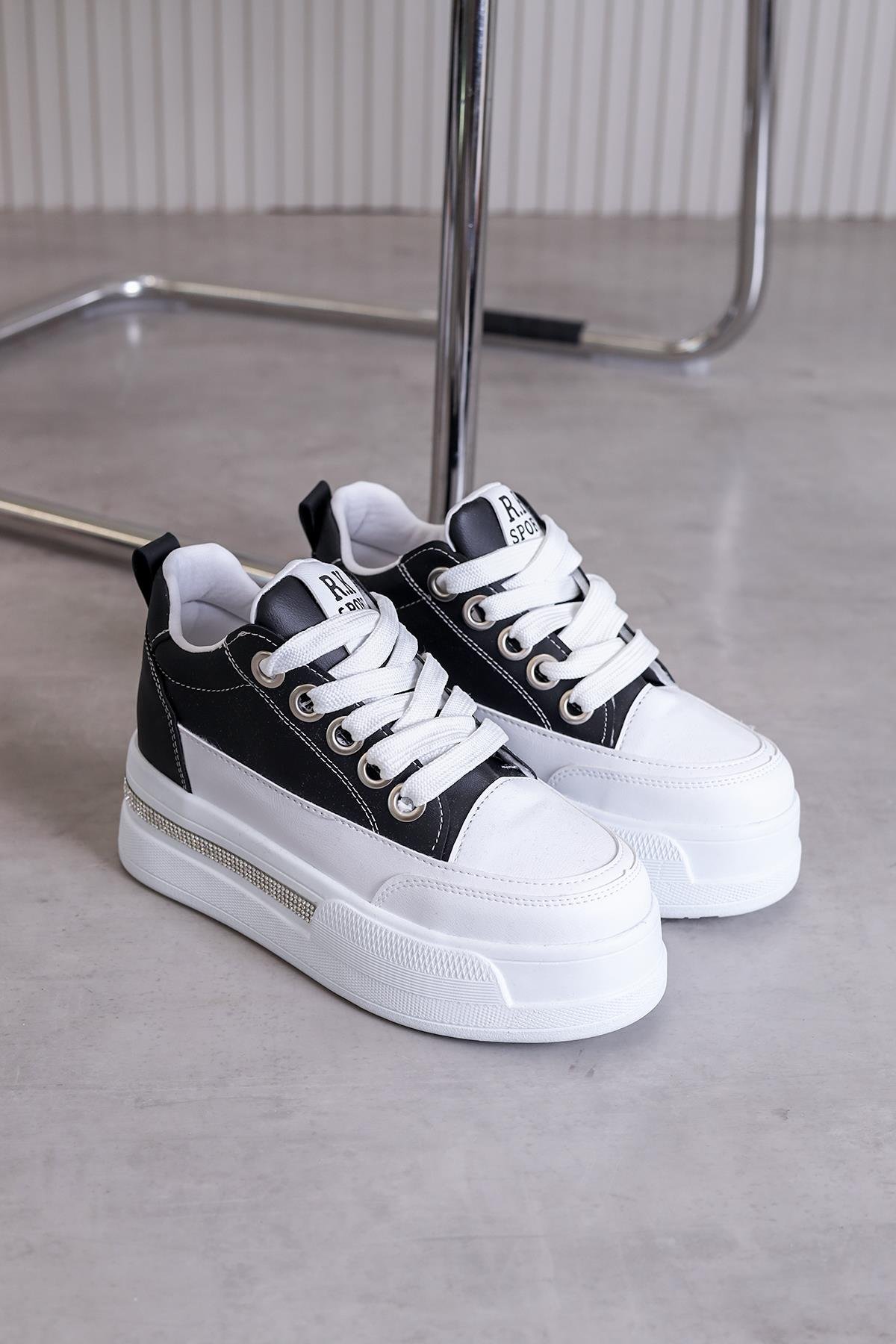f018 model dolgu taban 5 cm topuklu yeni sezon spor ayakkabı BEY.SIY (10BYN-F018-BEY.SIY)