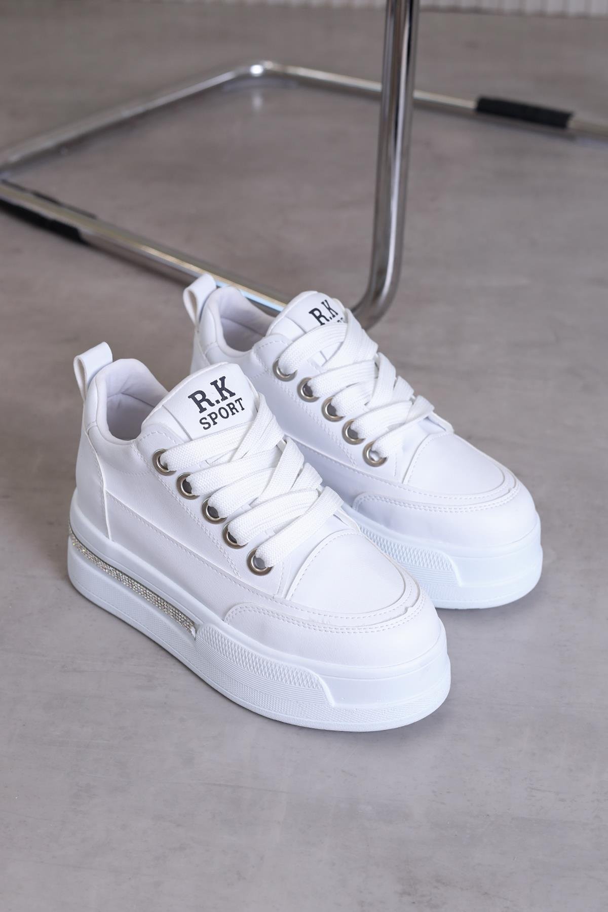 f018 model dolgu taban 5 cm topuklu yeni sezon spor ayakkabı BEYAZ (10BYN-F018-BEYAZ)