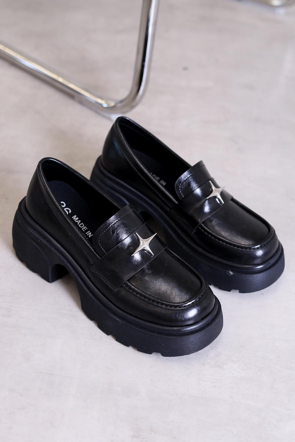 fl2500 model 3 cm topuklu aksesuar detaylı loefar babet ayakkabı SIY.KIRISK